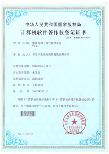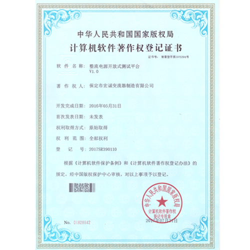 計算機軟件注冊權(quán)登記證書——整流電源開放式測試平臺V1.0