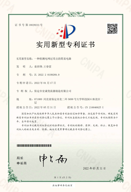實用新型證書一種檢測電網(wǎng)過零點的簡易電路