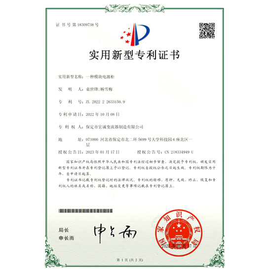 一種模塊電源柜實用新型專利證書
