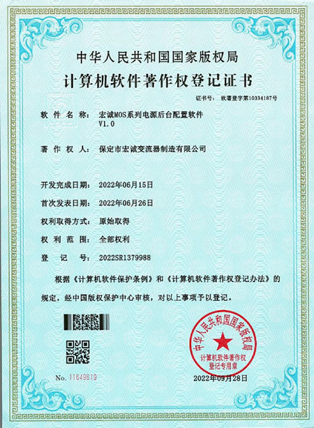 計算機軟件薯作權(quán)登記證書--MOS系列電源后臺配置軟件v1.0