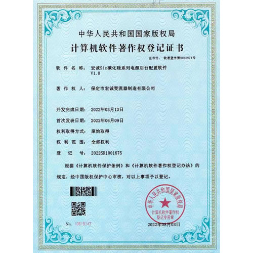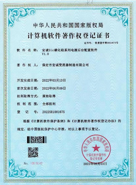 計算機軟件著作權(quán)登記證書--Sic碳化硅系列電源后臺配置軟件V1.0