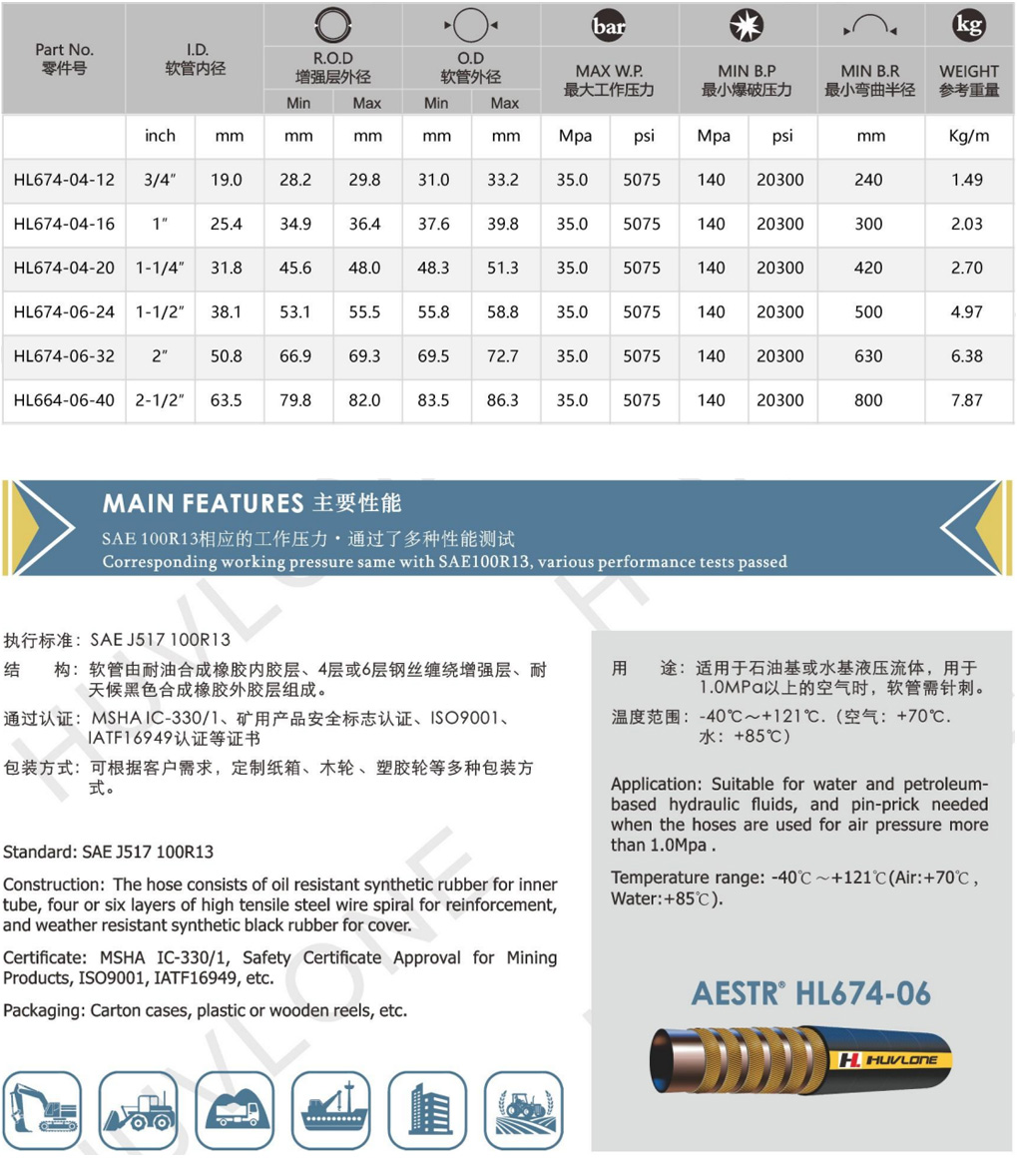 產(chǎn)品用途:適用于石油基或水基液壓流體,用于1.0MPa以上的空氣時,軟管需針刺。