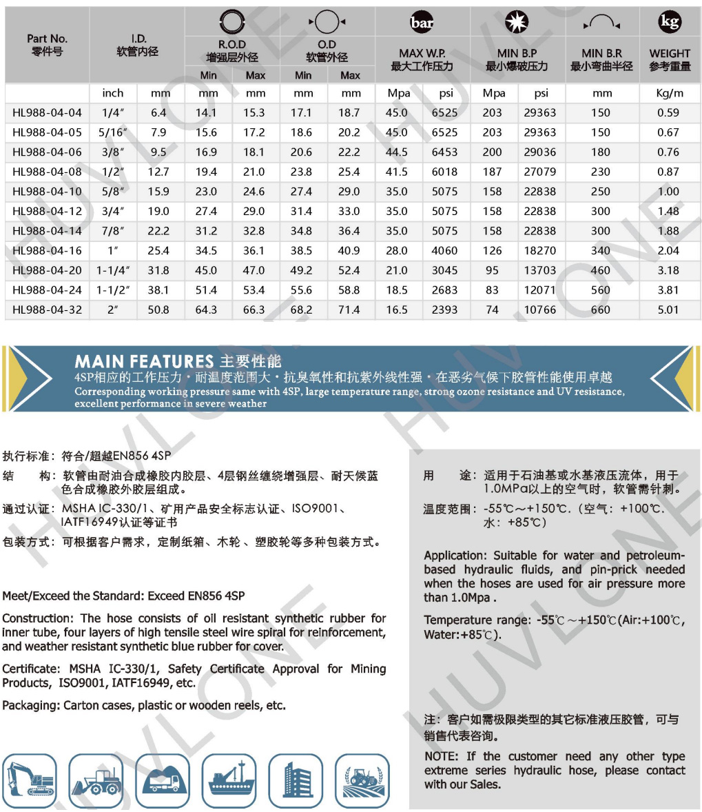 產品用途:適用于石油基或水基液壓流體,用于1.0MPa以上的空氣時,軟管需針刺。
