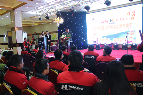 公司董事長趙永濤先生發(fā)表致辭。感謝大家一年來的辛勤工作,并表達了對員工及其家人最深切的祝福,以及對匯龍液壓未來發(fā)展的高度期許。趙董的講話飽含深情,催人奮進,勢必將強力助推匯龍液壓在2016年的工作中再上一個新臺階!