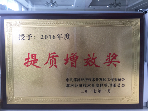 2017年1月,漯河經(jīng)濟技術(shù)開發(fā)區(qū)召開2017年度工作會,對2016年漯河經(jīng)濟技術(shù)開發(fā)區(qū)經(jīng)濟發(fā)展作出突出貢獻、成長較快的優(yōu)秀企業(yè)進行了表彰。