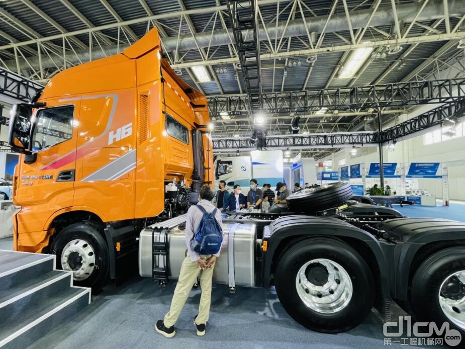 展會現(xiàn)場,兩只“大白”——純電、氫能新能源重卡相當(dāng)矚目。高大耀眼的紅巖杰獅H6充換一體純電動牽引車,具有“跑得快、提速快、換電快”三大優(yōu)勢,3-5分鐘即可完成電池更換,且搭載先進成熟的282Kw?h寧德時代動力電池,配備玖行換電箱,動力響應(yīng)速度快,加速性能優(yōu)秀,可適用于港口駁運、園區(qū)物流、短途干線運輸?shù)榷喾N使用場景,成為物流運輸產(chǎn)業(yè)綠色轉(zhuǎn)型、動能升級的優(yōu)選。